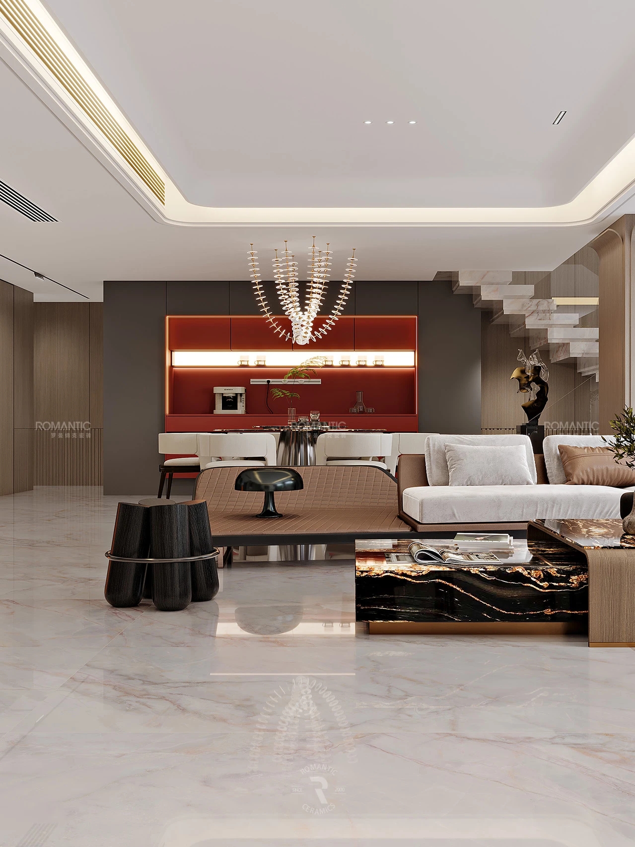 當冰冷的建材被賦予藝術的靈魂,羅曼締克瓷磚-山西長治旗艦店,以前沿的設計、豐富的選材、沉浸的體